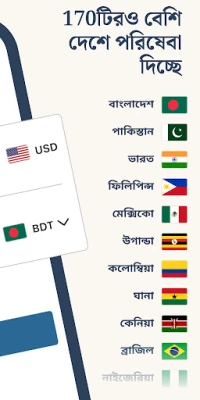 Remitly-এর বিশাল নেটওয়ার্ক ১৭০টিরও বেশি দেশে বিস্তৃত, যা বিশ্বজুড়ে নিরাপদে টাকা পাঠানোর সুবিধা দেয়। আপনার সুবিধা অনুযায়ী, সরাসরি মোবাইল মানি প্রদানকারী যেমন bKash, Upay, MTN, Vodafone, eSewa, GCash, MPesa, EasyPaisa, GoPay সহ আরও অনেকের কাছে ফান্ড পাঠাতে পারেন। অথবা Dutch Bangla Bank, Islami Bank Bangladesh, Sonali Bank, Citi Bank, BRAC Bank, Banreservas, GT Bank, Bank Alfalah, Polaris Bank, MCB, Habib Bank সহ আমাদের বিশ্বস্ত ব্যাংক নেটওয়ার্কের মাধ্যমেও টাকা ট্রান্সফার করুন। বাংলাদেশ, ভারত, মেক্সিকো, পাকিস্তান, ফিলিপাইন, চীন, নাইজেরিয়া, কেনিয়া এবং আরও অনেক দেশে আপনার ব্যাংক অ্যাকাউন্ট, ক্রেডিট কার্ড বা ডেবিট কার্ড ব্যবহার করে সহজেই অর্থ প্রেরণ করুন। Remitly আপনার জীবনকে সহজ করে এবং নিশ্চিত করে যে আপনার ভালোবাসার মানুষরা সঠিক সময়ে সঠিক পরিমাণে অর্থ পায়।